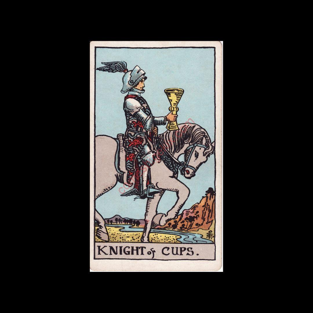 白馬にまたがった騎士が、優しく、そして丁寧に「愛」や「吉報」が詰まったカップを運んできてくれるカード。
